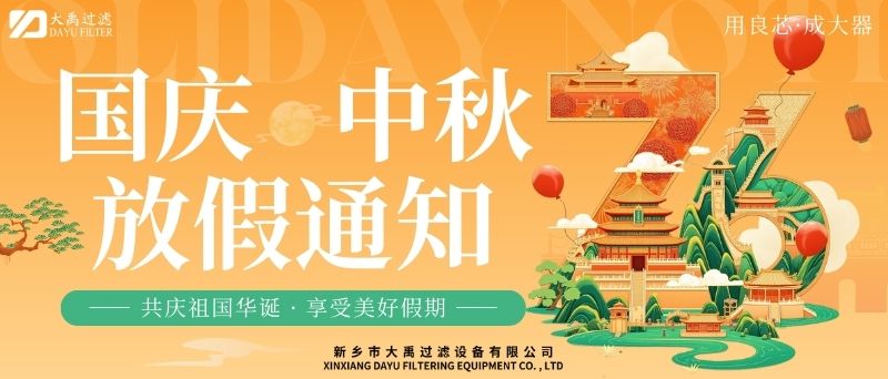 尊敬的客戶及合作伙伴:秋風送爽,丹桂飄香。值此國慶與中秋雙節(jié)來臨之際,謹向您及家人致以zui誠摯的節(jié)日祝福!根據(jù)國家法定節(jié)假日安排,結(jié)合公司實際情況,現(xiàn)將2025年國慶+中秋雙節(jié)放假安排及相關(guān)事項通知如下:一、放假時間2025年10月1日(星期三)至10月6日(星期一),共計6天。10月7日(星期二)起正常上班。9月28日(周日)、10月12日(周日)補班。二、業(yè)務(wù)服務(wù)說明放假期間,公司線上咨詢通道保持暢通。銷售人員將不定期查看并回復您的咨詢,但受假期影響,可能存在回復延遲的情況,敬請諒解。如遇緊急事項,您可撥打以下熱線:王經(jīng)理13613905650;李經(jīng)理13839073363,我們將竭誠為您服務(wù)。三、生產(chǎn)安排提醒因車間節(jié)前生產(chǎn)訂單已排滿,為確保假期前后生產(chǎn)質(zhì)量與效率,放假期間(10月1日至10月6日)將暫停安排新生產(chǎn)訂單生產(chǎn)。節(jié)前已下單的訂單將按原計劃正常推進,放假期間新接訂單將統(tǒng)一順延至10月7日復工后,按序安排生產(chǎn)。由此帶來的不便,我們深表歉意,感謝您的理解與支持。四、溫馨提示假期出行請注意安全,做好個人防護。公司官網(wǎng)及社交媒體平臺將持續(xù)更新節(jié)日動態(tài)及服務(wù)資訊,歡迎隨時關(guān)注。佳節(jié)共團圓,服務(wù)不間斷。值此雙節(jié)同慶的美好時刻,衷心感謝您長期以來對我司的信任與支持!我們期待在節(jié)后以更飽滿的熱情、更優(yōu).質(zhì)的服務(wù)與您攜手同行,共啟新程!此致敬禮!新鄉(xiāng)市大禹過濾設(shè)備有限公司2025年9月28日